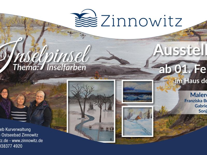 Unsere Ausstellung „Inselfarben“ zeigt die Vielfalt unserer Werke und Techniken, inspiriert von der Schönheit der Insel Usedom. Das Malen in der Gemeinschaft bedeutet für uns Freude am Schaffen, am gemeinsamen Austausch und der Möglichkeit, voneinander zu lernen.