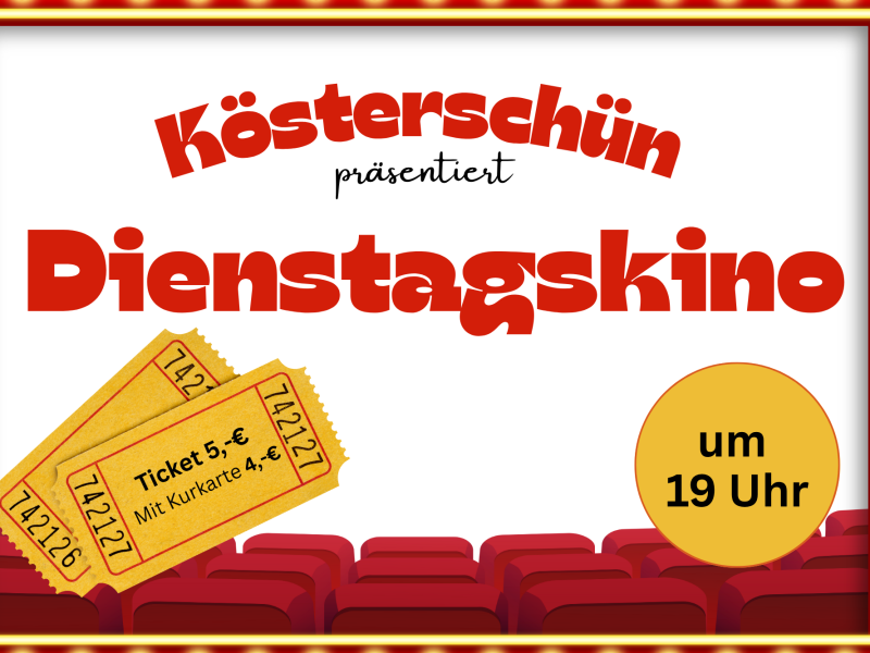 Jeden Dienstag 19:00 Uhr präsentieren wir Ihnen einen Spielfilm. Schauen Sie gerne vorbei.