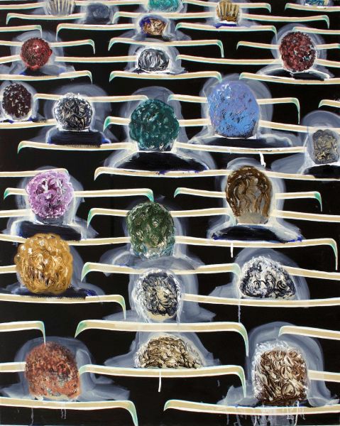 Auch mit der Vergänglichkeit des eigenen Schaffens befasst sich der Künstler. Allein der Nachwelt überlässt er es nicht, seine Bilder zu bewerten und schon gar keinem Nachlassverwalter. Thomas Hartmann findet, nicht jedes Bild muss erhalten bleiben. Erst mit Abstand lässt sich beurteilen, welche Werke Bestand haben sollen. Ein Lagerregal, überbordend gefüllt mit 300 zerstörten Bildern, wird zum Monument der Selbstermächtigung. Schreinartig türmt er die Relikte zu einem neuen Kunstwerk auf. Selektion und Zerstörung sind Teil des künstlerischen Prozesses. Regale sind dabei bedeutsame Werkzeuge des Ordnens und Bewahrens – Metapher für das Fortbestehen im Angesicht der Vergänglichkeit.