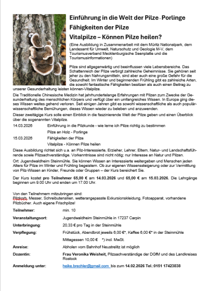 Dieser zweitägige Kurs solle einen Einblick in die faszinierende Welt der Pilze geben und einen Überblick über die sogenannten Vitalpilze.