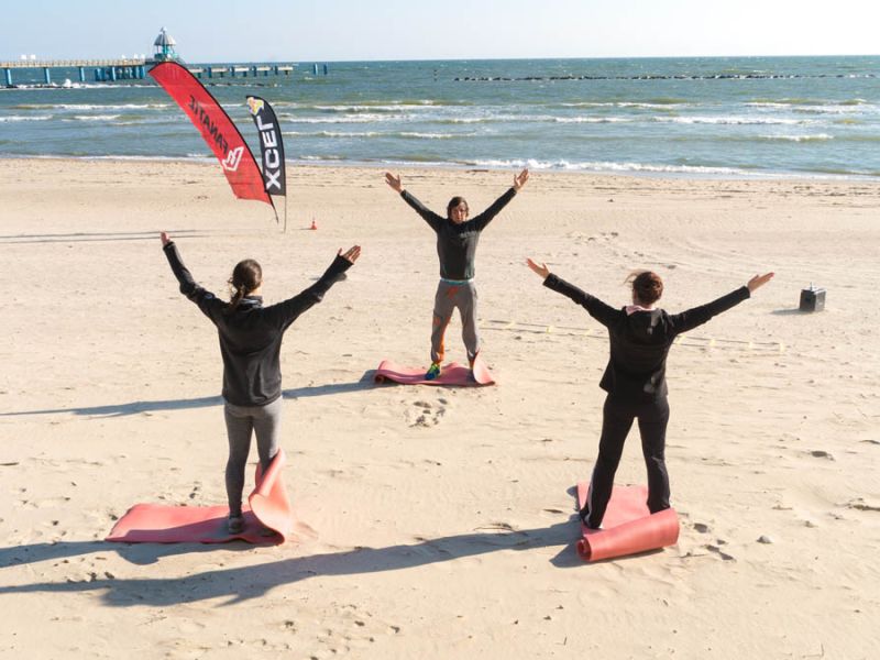 Treffpunkt ist an der ProBoarding Station am Hauptstrand rechts von der Seebrücke.