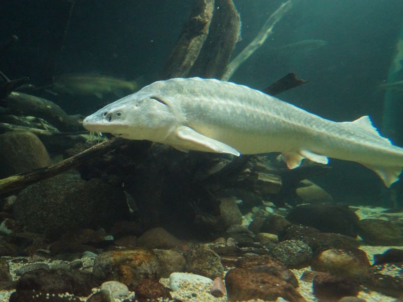 Dienstags um 13:30 Uhr werden die Tiere in der Flussmündung gefüttert. Im Aquarium Flussmündung ziehen große Störe ihre Bahnen. Unter ihnen weilt ein Waxdick, der schon seit mehr als 40 Jahren im Deutschen Meeresmuseum zu Hause ist.