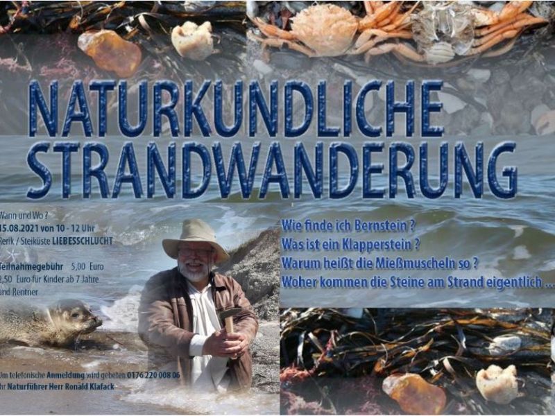 Wie finde ich Bernstein? Was ist ein Klapperstein? Warum heisst die Miesmuschel so? Dies und vieles mehr können sie auf einer Strandwanderung mit dem Natur- & Landschaftsführer Ronald Klafack entdecken und erfahren.