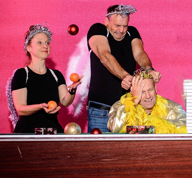 Nach der erfolgreichen Erstausgabe unseres weihnachtlichen Impro-Specials untersucht das Schauspielensemble auch in dieser Spielzeit die Geheimnisse der Weihnacht: Besinnlichkeit und Nervenzusammenbrüche, Überraschungen und jede Menge Wünsche: Ein weihnachtliches Lied aus der Perspektive der Gans? Die Weihnachtsgeschichte im Weltall? Oder einfach eine herzerwärmende Geschichte im verschneiten Winterwald? Machen Sie es sich mit uns gemütlich und lassen Sie sich verzaubern. Ein absolutes Muss in der Zeit der Jahresendflügelfiguren!