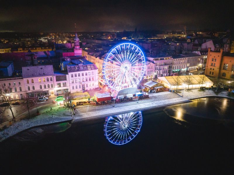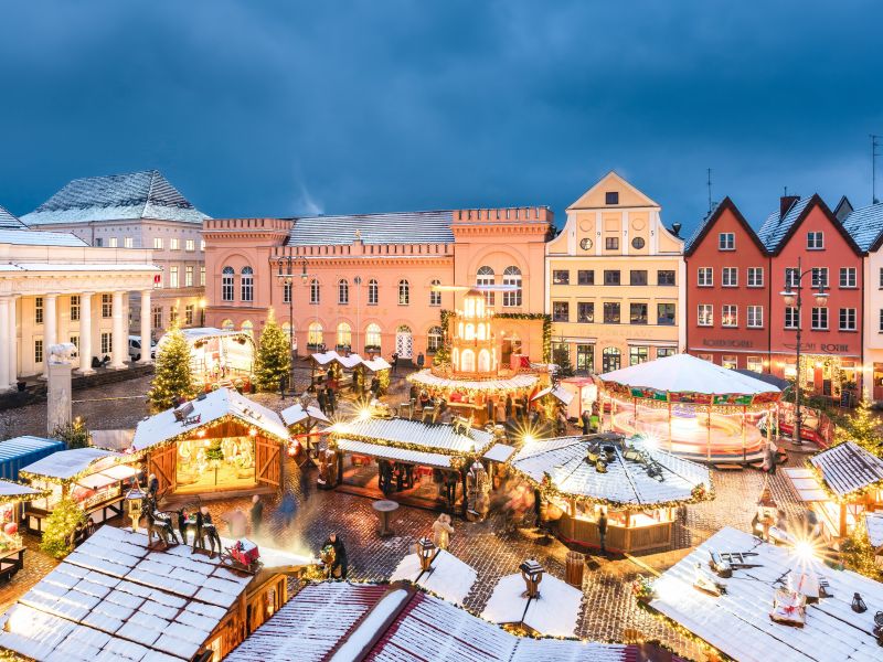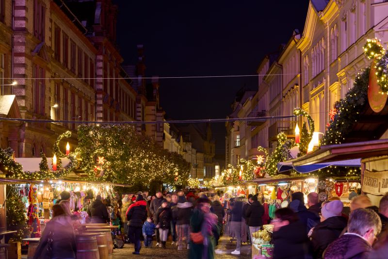 Ab dem 24. November 2025 erstrahlt die Schweriner Altstadt wieder im Glanz des Weihnachtsmarkts. Auf dem Marktplatz begrüßen eine prächtige Tanne und die bekannte Pyramide die Besucher, während am Pfaffenteich die Eisbahn, das Riesenrad und die Almhütte locken. In den festlich geschmückten Holzhütten finden sich handgefertigte Waren, regionale Spezialitäten und duftender Glühwein.