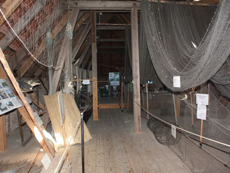 Many historical and contemporary exhibits of the fishing trade provide an insight into this regional industry. The exhibition consists of items on loan from Seenfischerei Obere Havel eG.
