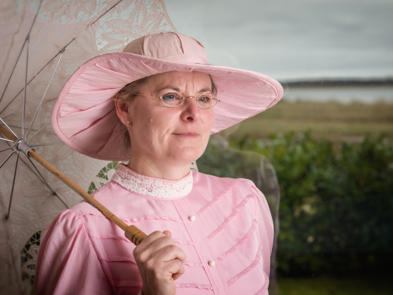 Silke Wilcke appears in the fashion of the turn of the century and shows rare historical views of Rügen on the big screen.