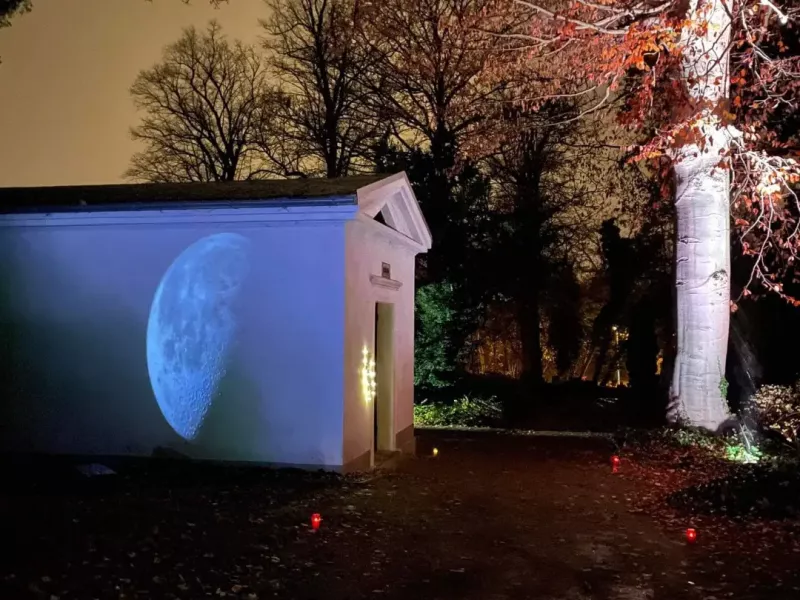 Lichtinstallationen tauchen die historischen Grablegen in ein surreales Flimmern, während Klänge und Erzählungen die Vergangenheit wieder lebendig werden lassen.