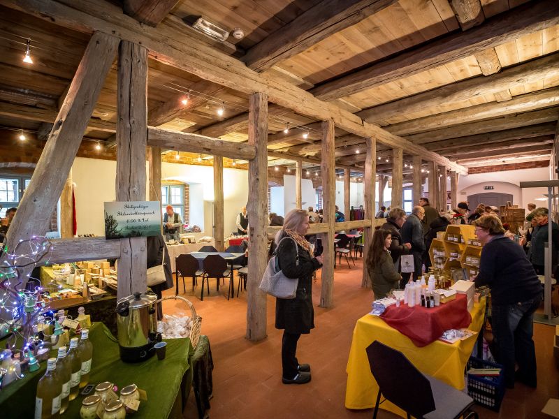 Whether you have a sweet tooth or love something hearty - there is something for everyone at the "Pre-Christmas Gourmet Market" in the Städtische Galerie Wollhalle. On Saturday, November 29 from 11 am to 5 pm and on Sunday, November 30 from 11 am to 5 pm, regional producers will be presenting various local and seasonal delicacies as well as handcrafted treasures. For example, you can enjoy the specialties of "Genuss und Tradition", Kniesenack and many other delicacies, including organic sausage products, Müritz cheese, mustard, oils, vinegar, wine, honey, game products, handmade Christmas decorations, alpaca products and much more. Your physical well-being is taken care of! Mulled wine,