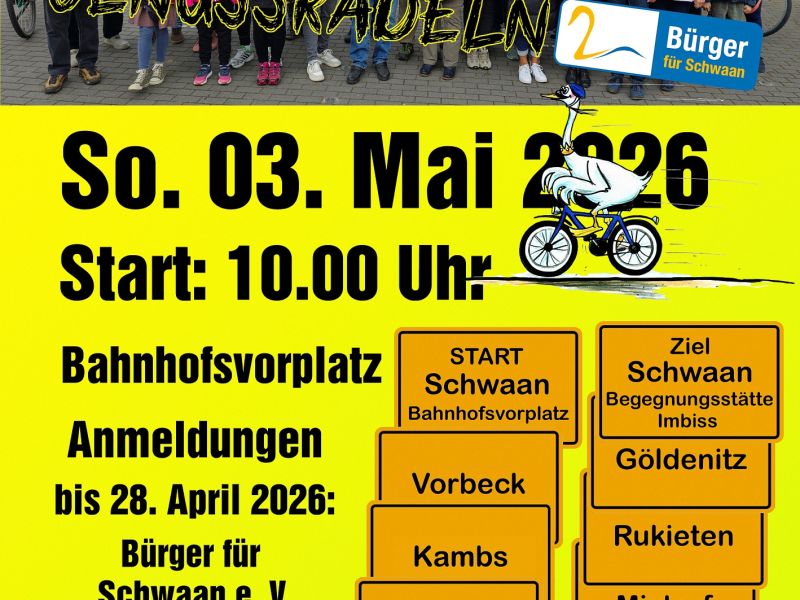 A beautiful 26 km bike tour through Schwaan and its villages awaits you on May 3, 2026.