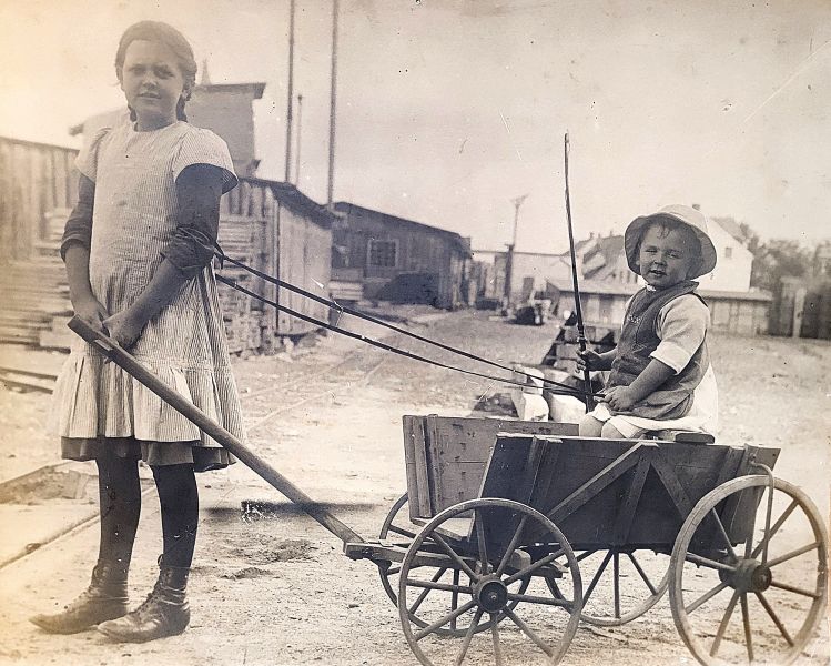 Hanna Awolin and her half-brother Berni (Bernhard) Awolin on their father's sawmill site in Teterow, shortly before 1914.