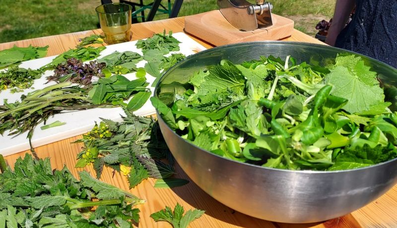 Before we start cooking, we search for ingredients and look for wild herbs or berries and mushrooms (depending on the season) to give our dishes that special touch. A small wild herb hike with the farm goats (!) led by Jeanette Nadebor from Kräuterhof Carlsthal in advance to warm up and get to know!