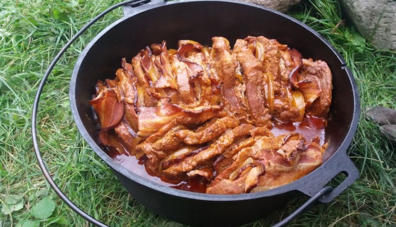 - Meat dish (game goulash or layered meat) in the Dutch Oven
