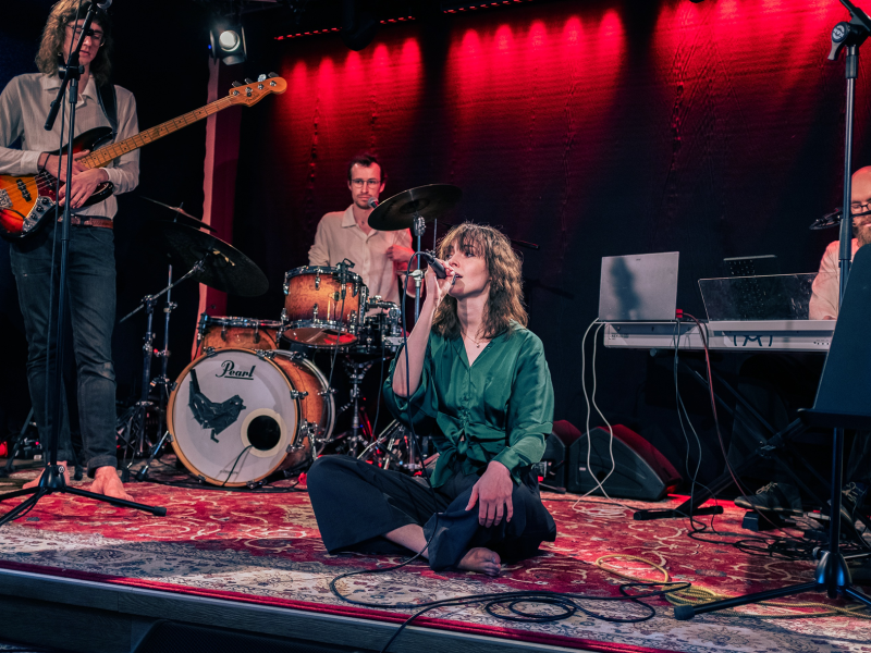 She performs solo, as a duo with percussionist Anton Thelemann or with a four-piece band. Typical for her performances: The acoustic guitar, which is the source of most of her song ideas.