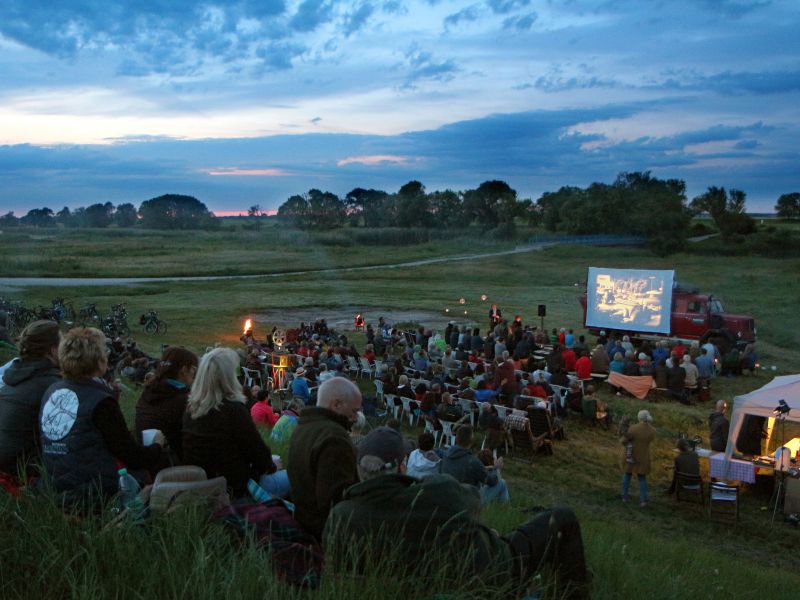 Freilichtkino im Hafen von Thiessow Stummfilmkino mit Musikalischer Begleitung von Tobias Rank am Piano