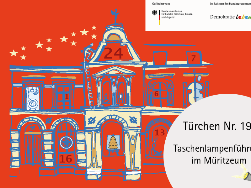 Wenn das Türchen Nummer 19 aufgeht, dann wird sich die Tür im Müritzeum am frühen Abend noch einmal öffnen. Wir entdecken exklusiv die NaturErlebnisAusstellung mit der Aquarienlandschaft im Dunkeln, geführt mit der Taschenlampe. Dauer ca. 1 1/2 Stunden. Es ist ein kostenfreies Angebot im Rahmen des Lebendigen Adventskalenders, eine Initiative des Werkhaus Waren e.V., Treffpunkt ist vor dem Haupteingang des Müritzeums.