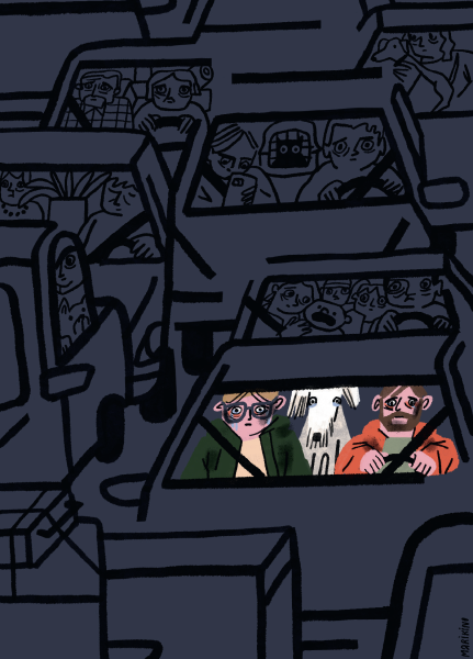 The series of drawings "Sleepless" shows the simultaneity and the excess of the most diverse experiences of war. The exhibition of the Heinrich Böll Foundation, Kyiv office, brings together images that are already imprinted in the collective memory or small episodes from everyday life - it is a collage of a new reality of war that is unstable and devastating, that needs to be reflected upon and commented on.