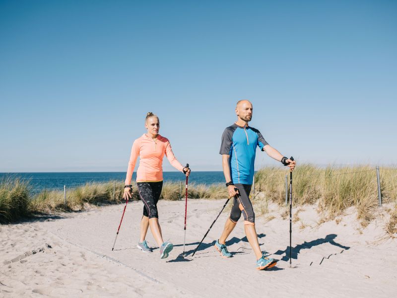 Gemeinsames Nordic Walking ab dem Waldhotel Göhren zur Förderung der Gesundheit, zum Abbau von Stress und zur Stärkung des Herz-Kreislauf-Systems – Bewegung in der Natur für mehr Wohlbefinden und neue Energie.
