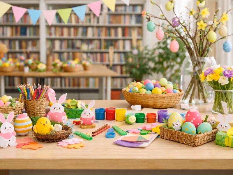 In der Kurbibliothek wird es bunt: Beim Osterbasteln für Kinder entstehen mit viel Fantasie und Freude kleine Kunstwerke rund ums Osterfest. Ob bemalte, frühlingshafte Dekorationen oder liebevolle Geschenke – hier können junge Bastelfans ihrer Kreativität freien Lauf lassen.